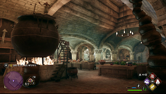 주방 내부는 마치 거대한 연회장을 연상시키듯이 수십 개의 오븐과 조리대가 줄지어 있으며, 동시에 많은 요리를 준비할 수 있도록 설계되어 있습니다. 특히, 주방의 천장은 그레이트 홀의 천장과 동일한 구조를 가지고 있어, 완성된 음식이 곧바로 위층의 그레이트 홀로 마법처럼 전달될 수 있도록 되어 있습니다.